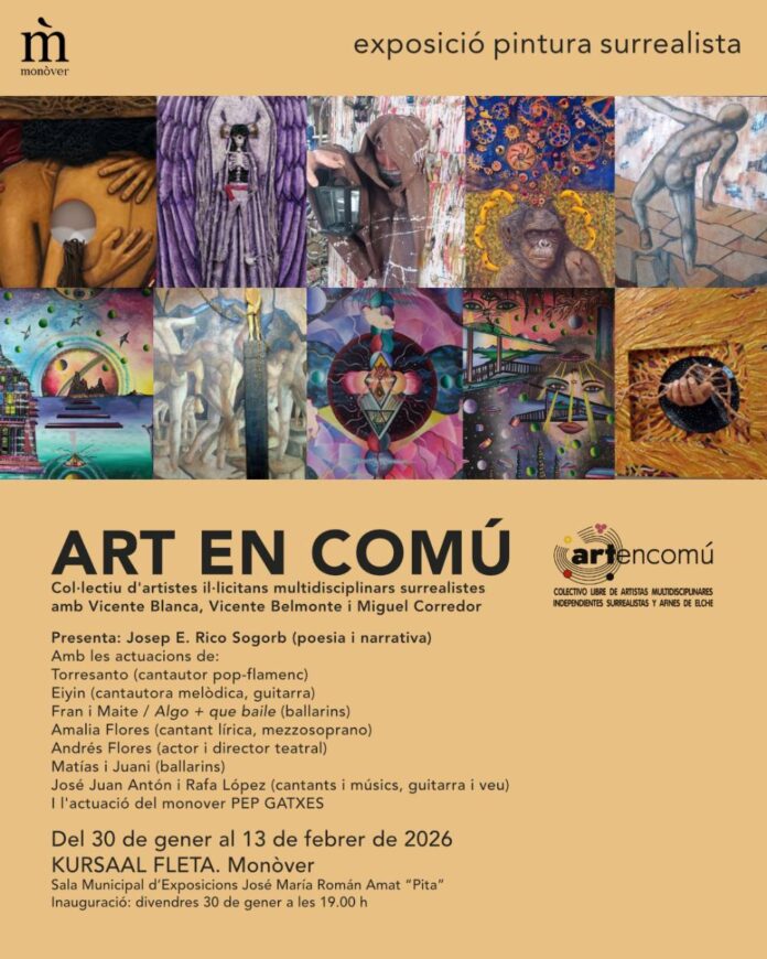 La Sala Municipal de Exposiciones José María Román Amat “Pita”, ubicada en el edificio Kursaal-Fleta de Monóvar, acogerá una exposición de pintura surrealista organizada por el colectivo ART EN COMÚ.